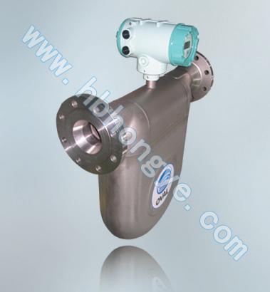 HYB-CMFI质量流量计的结构是双弯头结构,其测量法则是通过测量功用在双弯头上的科里奥利力(简称为科氏力)来检测管道中的质量流量。